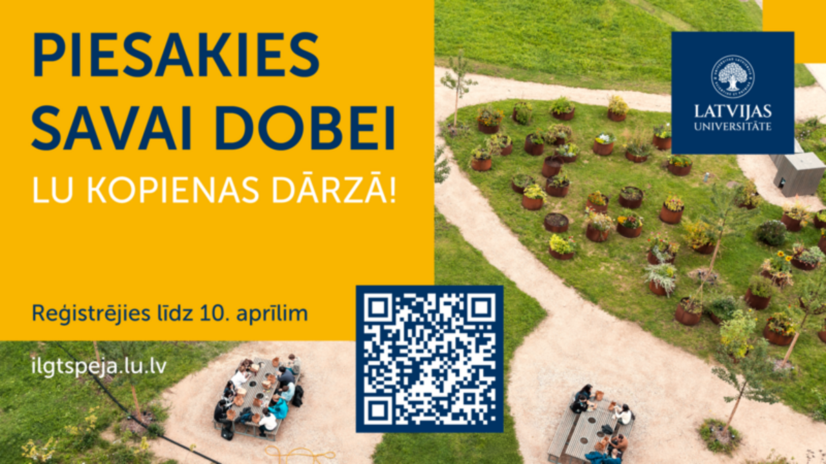 Līdz 10. aprīlim Latvijas Universitātes (LU) saime aicināta pieteikties iespējai uzņemties rūpes par kādu no 45 LU Kopienas dārza dobēm – individuāli vai komandā. Tā ir iespēja ne tikai audzēt savus augus, augļus un dārzeņus, bet arī piedalīties kopienas veidošanā, kur satiekas cilvēki, idejas un dažādu jomu pieredze.