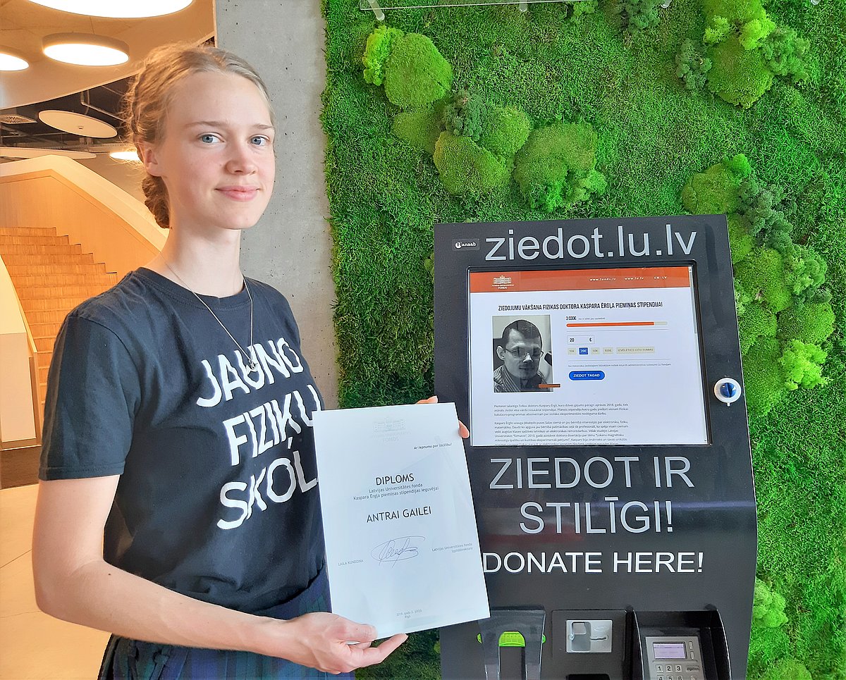 Fizmatu oranžums manī ir jau trīs gadus, un šogad tas sakoncentrējās pat Gada Fizmatā’19! Vairāk gan sanāk skandināt JFS vārdu gan vienkārši palīdzot nodarbību norisē, gan lasot populārzinātniskās lekcijas un vadot praktiskos darbus. Šos trīs pamatstudiju gadus blakus bijis arī LU fonds, jo pēc ģimnāzijas beigšanas pieteicos Salaspils novada pašvaldības stipendijai, kuru saņēmu visus studiju gadus. Ai, tas bija prieciņš, ka pilsēta ne tikai skoloja, bet arī atbalstīja un motivēja vēlmi studēt.