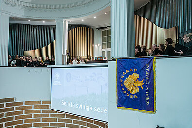 Svinīgo Senāta sēdi ar skanīgām balsīm papildināja LU jauktais koris "Jubilate" un sieviešu koris "Balta".