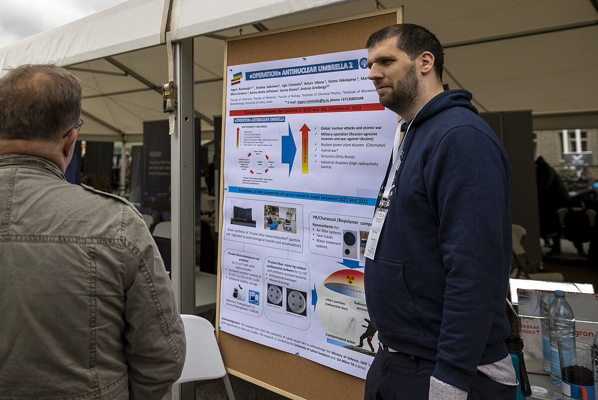 LU pētnieki piedalījās pasākumā ar starpdisciplinārās grupas (kopēji veidoto ziņojumu “Operation Antinuclear Umbrella 2” par LU pētnieku 2021-2022 laika posmā veiktajiem pētījumiem Cs-137, Sr-90, Co-60 radionuklīdu antidotu, PZ kompozītu ar aktīvo ogli un citiem komponentiem izstrādei, tai skaitā veiktajiem pētījumiem PZ un nano-sudraba daļiņu plāksteru izpētē.
