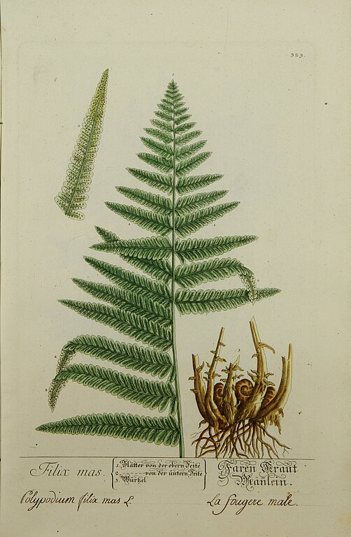Blackwell, Elizabeth. Herbarivm Blackwellianvm Emendatvm Et Avctvm Id Est Elisabethae Blackwell Collectio Stirpivm Qvae In Pharmacopoliis Ad Medicvm Vsvm Asservantvr Qvarvm Descriptio Et Vires Ex Anglico Idiomate In Latinvm Conversae Sistvntvr Figvrae Maximam Partem Ad Natvrale Exemplar Emendantvr Floris Frvctvsqve Partivm Repraesentatione Avgentvr Habitvs Externi Notae Propriae Addvntvr Et Omnes Species Probatis Botanicorvm Nominibvs Illvstrantvr. Centvria IIII = Vermehrtes und verbessertes Blackwellisches Kräuter-Buch das ist Elisabeth Blackwell Sammlung der Gewächse die zum Arzney-Gebrauch in den Apotheken aufbehalten werden deren Beschreibung und Kräfften aus dem Englischen übersetzt angezeiget die Abbildung grossen Theils nach der Natur verbessert mit Beyfügung der Theile der Blume und Frucht wie auch des äuserlichen Ansehens eigenen Kennzeichen vermehret und alle Arten mit bewährten Nahmen der Kräuter-Lehrer erläutert werden Viertes Hundert. Nürnberg : gedruckt bey Christian de Launoy, 1760. https://leopard.tu-braunschweig.de/receive/dbbs_mods_00038731