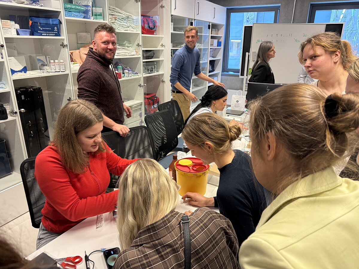 Latvijas Universitātes Medicīnas un dzīvības zinātņu fakultātes profesionālā bakalaura un maģistra studiju programmu “Māszinības” studenti pagājušā nedēļā padziļināja zināšanas par asinsvadu piekļuvi un intravenozo terapiju.